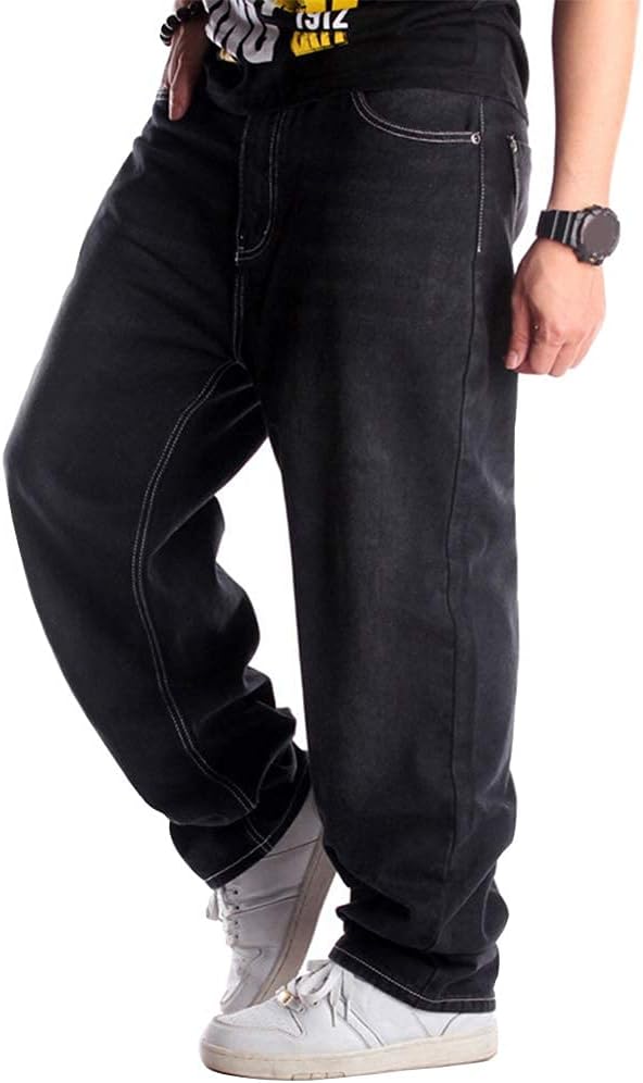 - These hiphop skateboard jeans are loose fit and straight cut design, made of 100% cotton denim fabric. Professional sewing machine, sewing masters and strong double sewing thread for long, durable use.