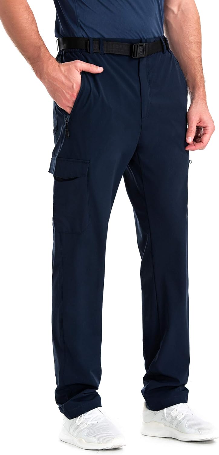 Men’s Elastic-Waist Travel Pant Stretchy Lightweight Pant Multi-Pockets Quick Dry Breathable
